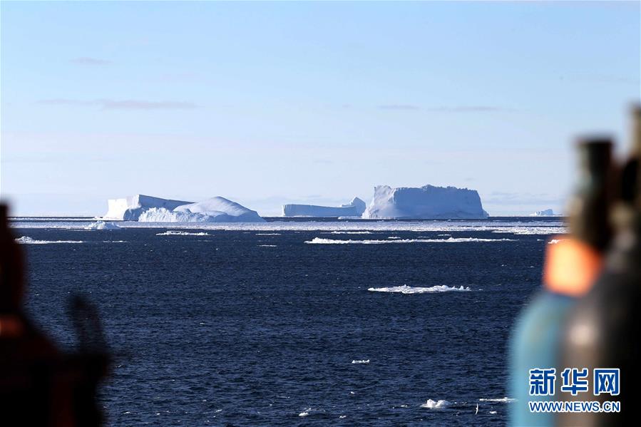 從“雪龍”號(hào)極地考察船上拍攝的普里茲灣海域冰山群(11月29日攝)。 新華社記者 劉詩平 攝