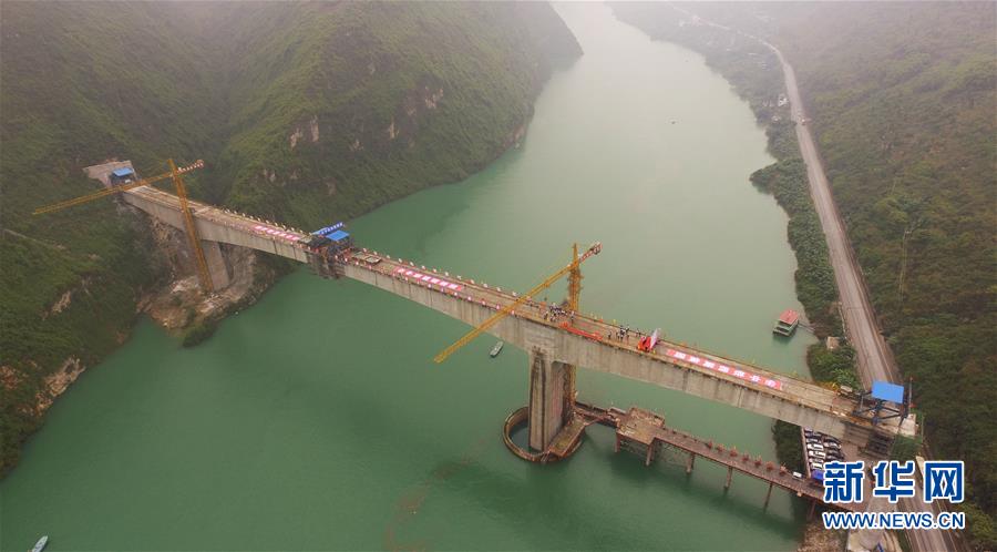 渝懷鐵路涪秀二線重點工程——烏江右線大橋主跨成功合龍