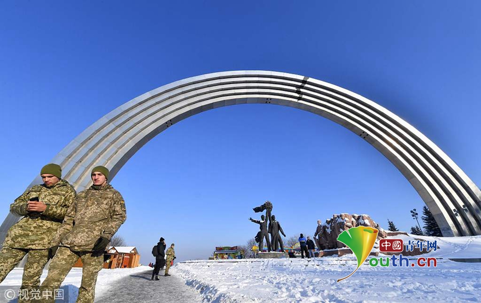 當(dāng)?shù)貢r(shí)間2018年12月2日,烏克蘭基輔,蘇聯(lián)時(shí)期象征著烏克蘭和俄羅斯友誼拱形建筑被不知名藝術(shù)家添加了一道裂縫。俄烏黑海沖突后,緊張局勢升級,烏克蘭總統(tǒng)波羅申科于26日簽署戒嚴(yán)令。按照國家安全與國防委員會(huì)的決定,宣布批準(zhǔn)烏克蘭全國實(shí)施戰(zhàn)時(shí)狀態(tài)。