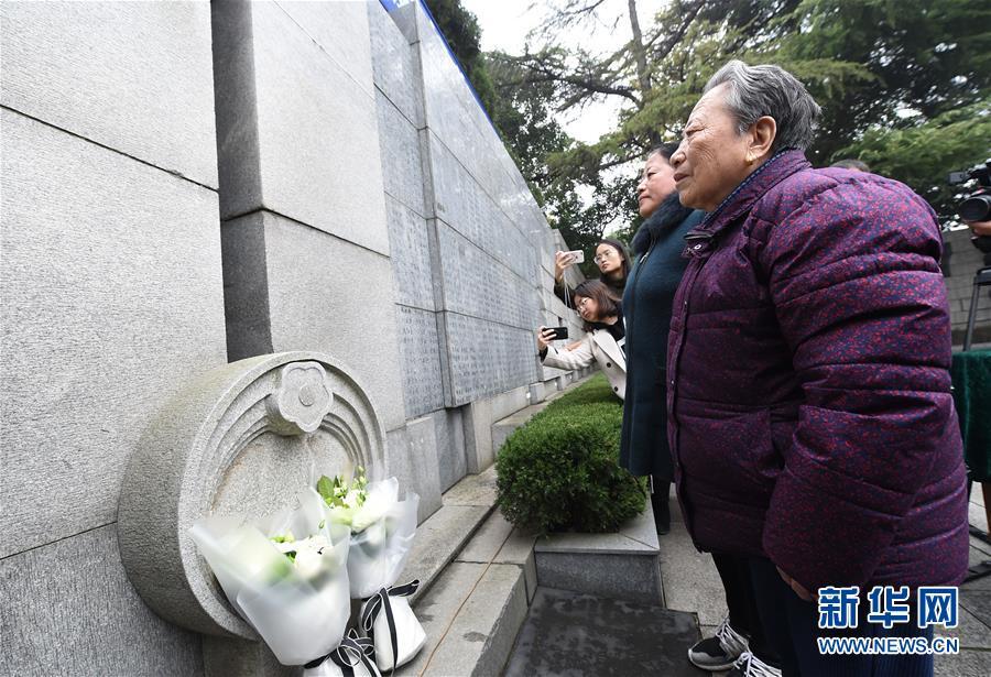 12月3日,南京大屠殺幸存者石秀英(右)率家屬在死難者名單墻前憑吊被侵華日軍殺害的親人。 當(dāng)日,在第五個南京大屠殺死難者國家公祭日到來之際,南京大屠殺死難者遺屬家祭活動在侵華日軍南京大屠殺遇難同胞紀(jì)念館正式啟動。首批前來開展家祭活動的南京大屠殺幸存者余昌祥、石秀英老人分別率家屬在紀(jì)念館內(nèi)的死難者名單墻前獻(xiàn)花、敬香、跪拜,并誦讀家信,表達(dá)對親人的哀思。 新華社記者 孫參 攝