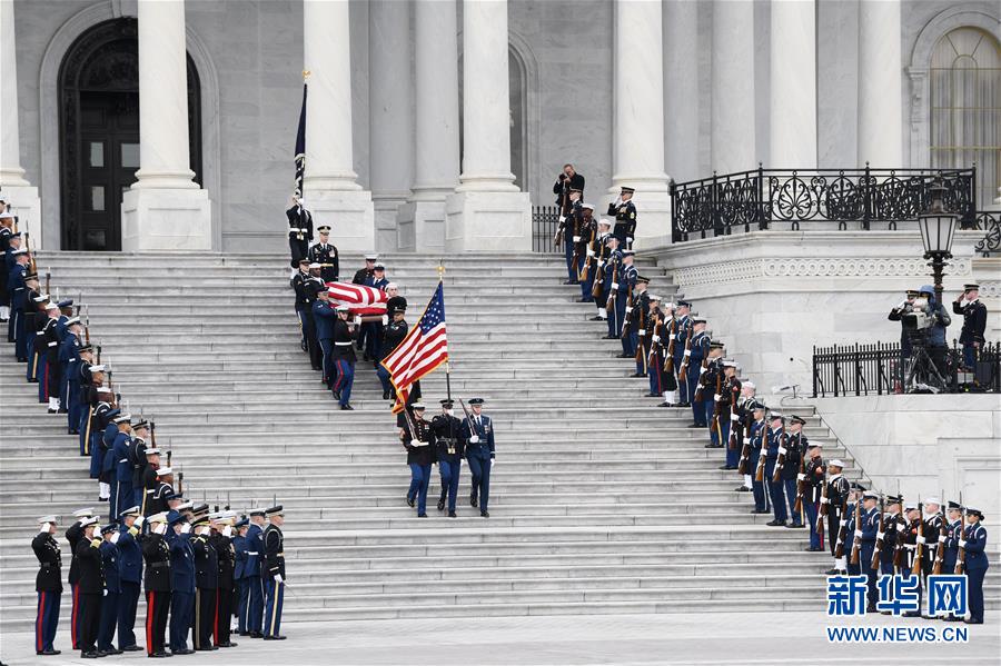 當(dāng)?shù)貢r間2018年12月3日,美國前總統(tǒng)老布什的靈柩送抵美國國會大廈,正式的追悼儀式就此開始。