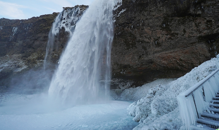 冰島瀑布結(jié)冰畫(huà)面震撼 如天外仙境