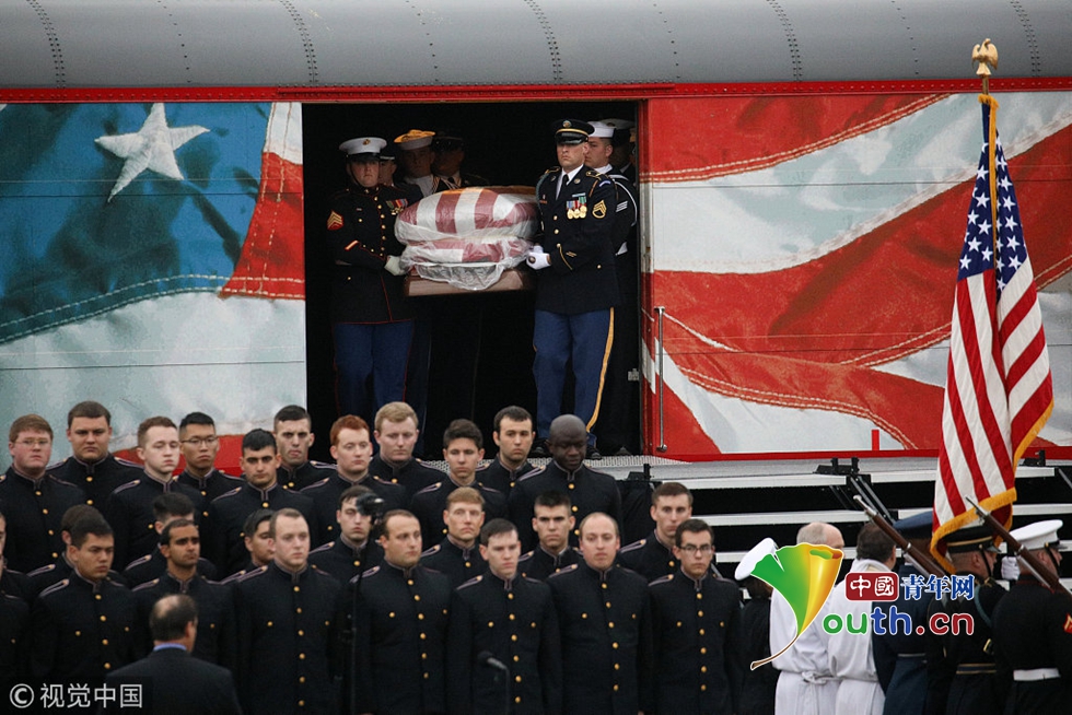 老布什靈柩下葬德州家族墓地 21架F18戰(zhàn)機編隊悼念