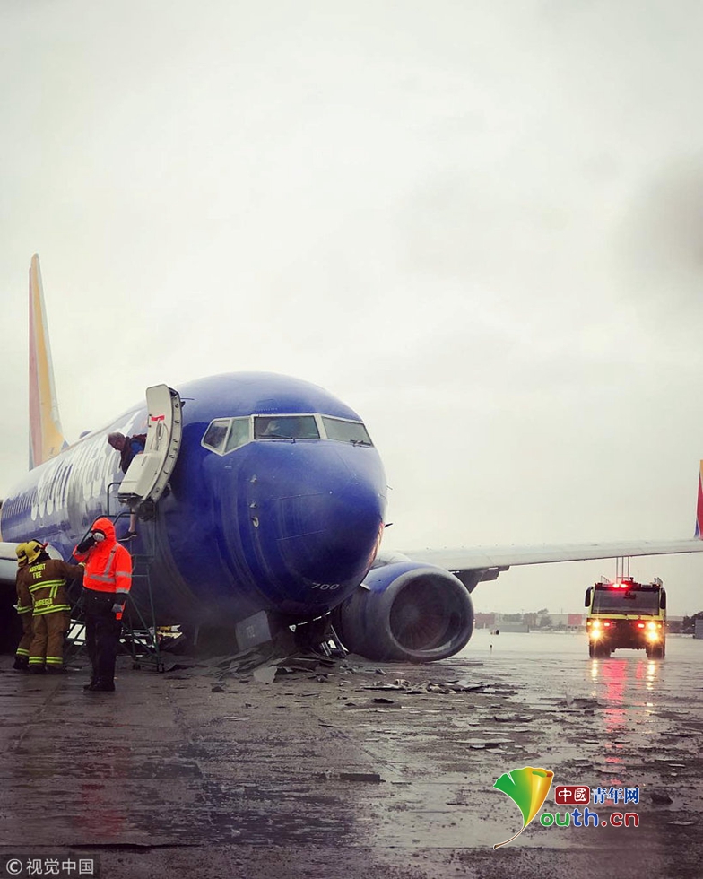 美國一架載117人航班降落時失控 沖出跑道撞上護欄