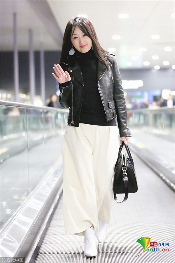 秦嵐潮味棉服亮相機(jī)場(chǎng) 口罩遮面露甜 ...