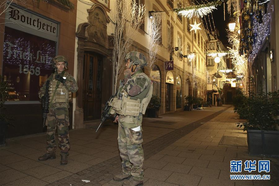 12月11日,士兵在法國斯特拉斯堡市中心的槍擊事件現(xiàn)場附近警戒。 新華社記者葉平凡攝
