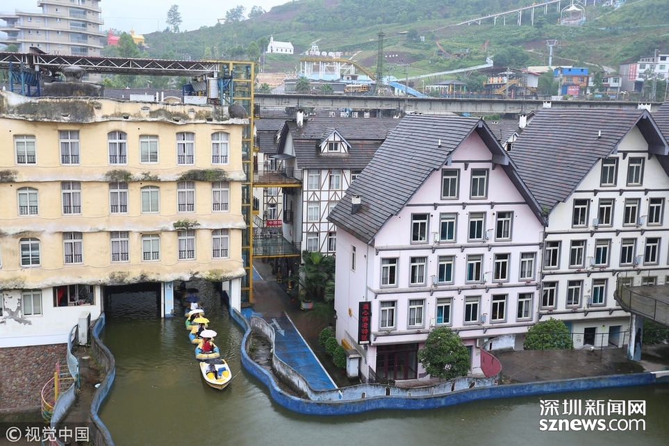 2018年6月20日,重慶涪陵,紅酒小鎮(zhèn)人工運(yùn)河全長(zhǎng)近5公里,2009年開建,先期依梨香溪岸線而建,后期隨著景區(qū)的發(fā)展,運(yùn)河逐漸拓展為高架橋的“空中運(yùn)河”,穿樓而過(guò)的“室內(nèi)運(yùn)河”,穿水上樂園而過(guò)的“水中運(yùn)河”。為確保一個(gè)水平面,運(yùn)河見房穿洞,過(guò)路搭橋,游客乘坐觀光船或蕩舟其中成為一道獨(dú)特的風(fēng)景線。隨著8D魔幻重慶的不斷走紅,該景區(qū)的網(wǎng)紅運(yùn)河正受到游客的喜愛與“打卡”。