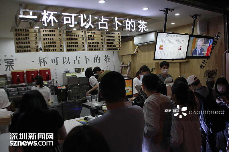 2018年4月21日,重慶,萬(wàn)達(dá)廣場(chǎng)附近有一家新開業(yè)的網(wǎng)紅答案茶的冷飲店,這家答案茶冷飲店人氣異?;鸨T前已排起了兩條“長(zhǎng)龍”。