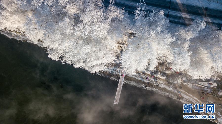 吉林松花江畔現(xiàn)大面積霧凇景觀 宛若 ...