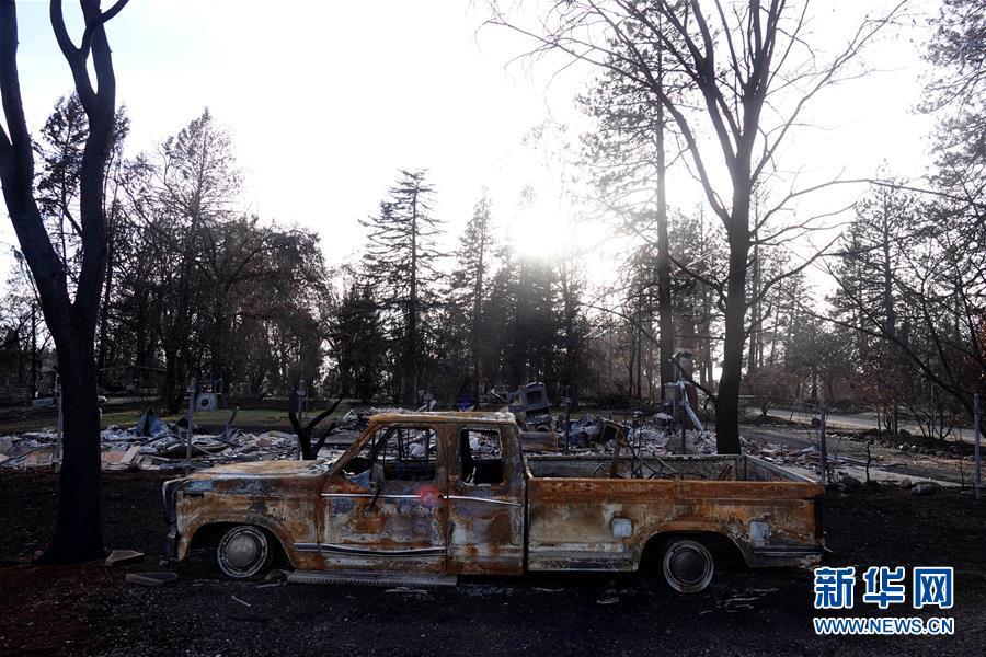 這是12月7日在美國(guó)加利福尼亞州比尤特縣天堂鎮(zhèn)拍攝的山火廢墟。 新華社記者吳曉凌攝