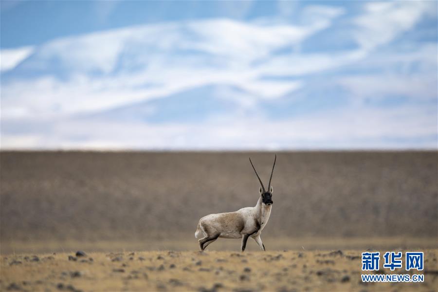 一只藏羚羊在西藏羌塘國家級自然保護區(qū)的原野上活動(12月14日攝)。  新華社記者 張汝鋒 攝