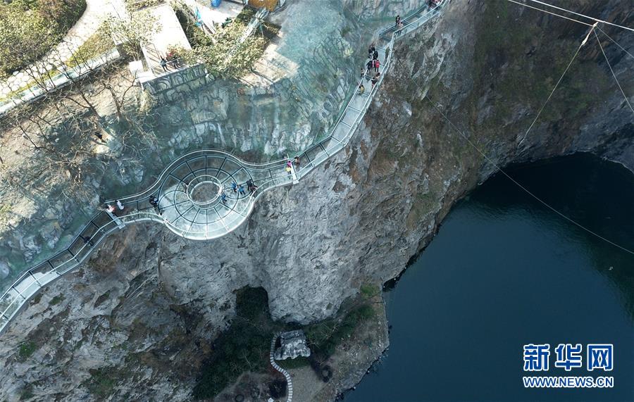12月18日,游客在樂園內(nèi)的玻璃棧道上行走(無人機(jī)拍攝)。 當(dāng)日,“世茂精靈之城主題樂園奇幻親子嘉年華開幕暨上海公益基地揭牌儀式”在位于上海佘山國家旅游度假區(qū)的世茂精靈之城主題樂園一期(“深坑秘境”)正式啟動(dòng)?!吧羁用鼐场迸徤虾Y苌绞烂揠H酒店,除了擁有俯瞰“深坑”的玻璃棧道外,還包括360度崖壁大擺錘、精靈樹屋、沙漠考古、夢幻水域和蟲蟲世界等項(xiàng)目,帶來親子游玩新體驗(yàn)。 新華社記者 方喆 攝