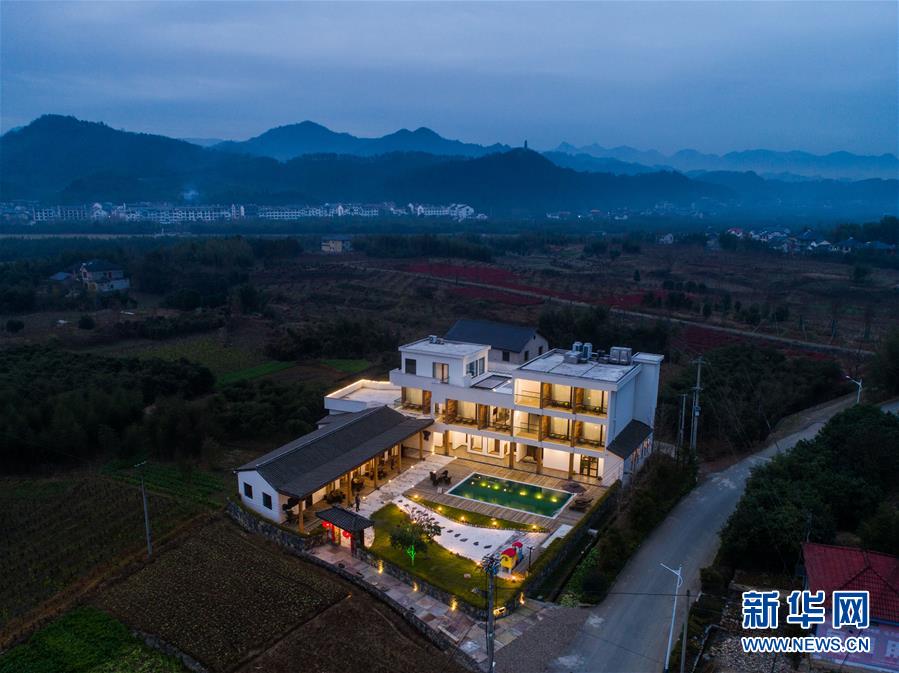 夜色中的民宿“初憶小院”(12月19日攝)。該民宿是河橋鎮(zhèn)“90后”女孩章淑貞開(kāi)辦的,民宿融入了大量的現(xiàn)代建筑設(shè)計(jì)風(fēng)格,深受年輕人的喜愛(ài)。  新華社記者 徐昱 攝