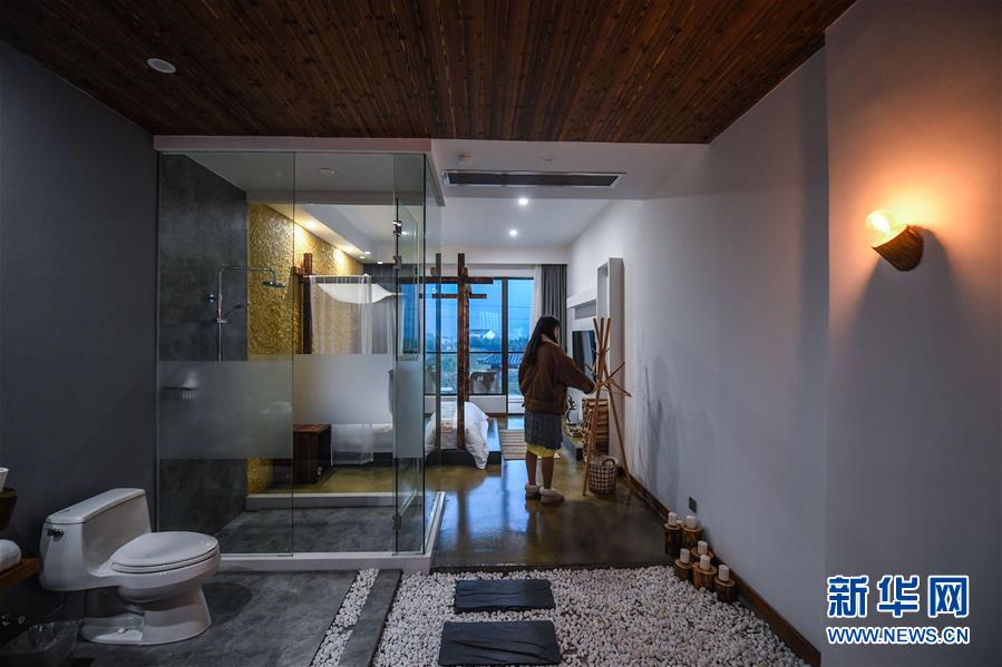 12月19日,章淑貞在民宿“初憶小院”房間內(nèi)整理內(nèi)飾。該民宿是河橋鎮(zhèn)“90后”女孩章淑貞開(kāi)辦的,民宿融入了大量的現(xiàn)代建筑設(shè)計(jì)風(fēng)格,深受年輕人的喜愛(ài)。  新華社記者 徐昱 攝