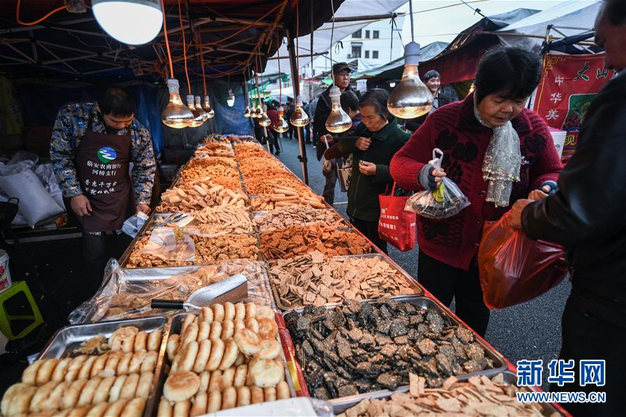 11月19日,人們?cè)趶R會(huì)現(xiàn)場(chǎng)購(gòu)買(mǎi)當(dāng)?shù)孛朗场?新華社記者 徐昱 攝
