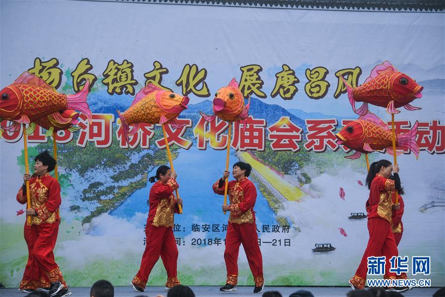 當(dāng)日,浙江省杭州市臨安區(qū)河橋鎮(zhèn)舉辦一場(chǎng)集傳統(tǒng)文化展示、民俗表演、美食品鑒等于一體的傳統(tǒng)廟會(huì),吸引了眾多游客和當(dāng)?shù)鼐用袂皝?lái)感受熱鬧氣氛。