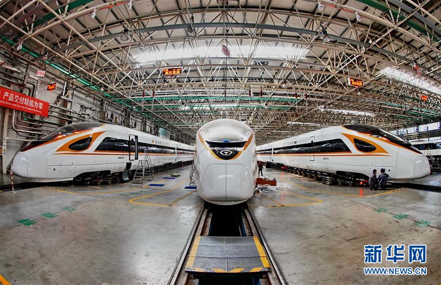 中車唐山機(jī)車車輛有限公司的工人在復(fù)興號動車組生產(chǎn)線上工作(3月23日攝)。  新華社記者楊世堯攝