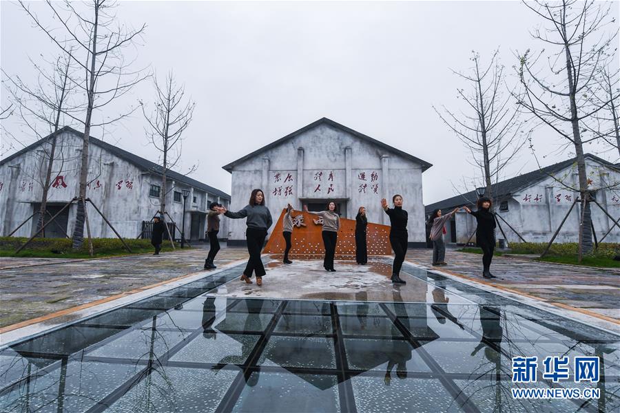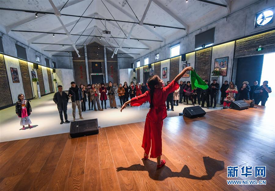 12月20日,村民們在舊糧倉改建的文體中心前排練廣場舞。  新華社記者 徐昱 攝
