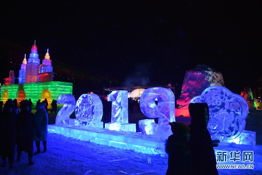 12月21日,游客在冰雪節(jié)開(kāi)幕式上參觀冰雕。新華社記者鄒予攝
