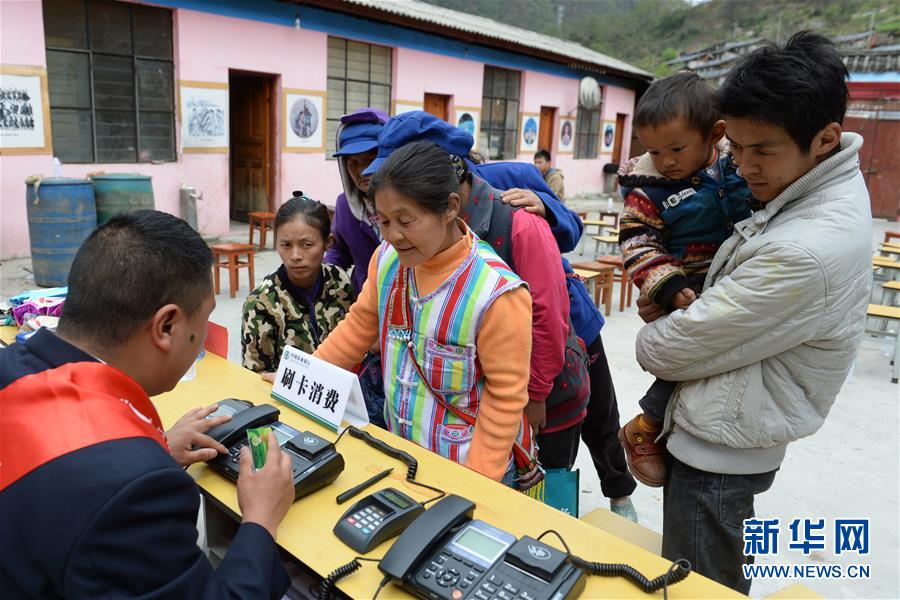 獨(dú)龍族群眾在辦理金融業(yè)務(wù)(2015年3月25日攝)。 新華社記者 胡超 攝