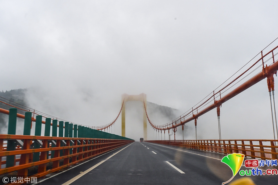 普立大橋云飄霧繞如仙境 一路風光美不勝收