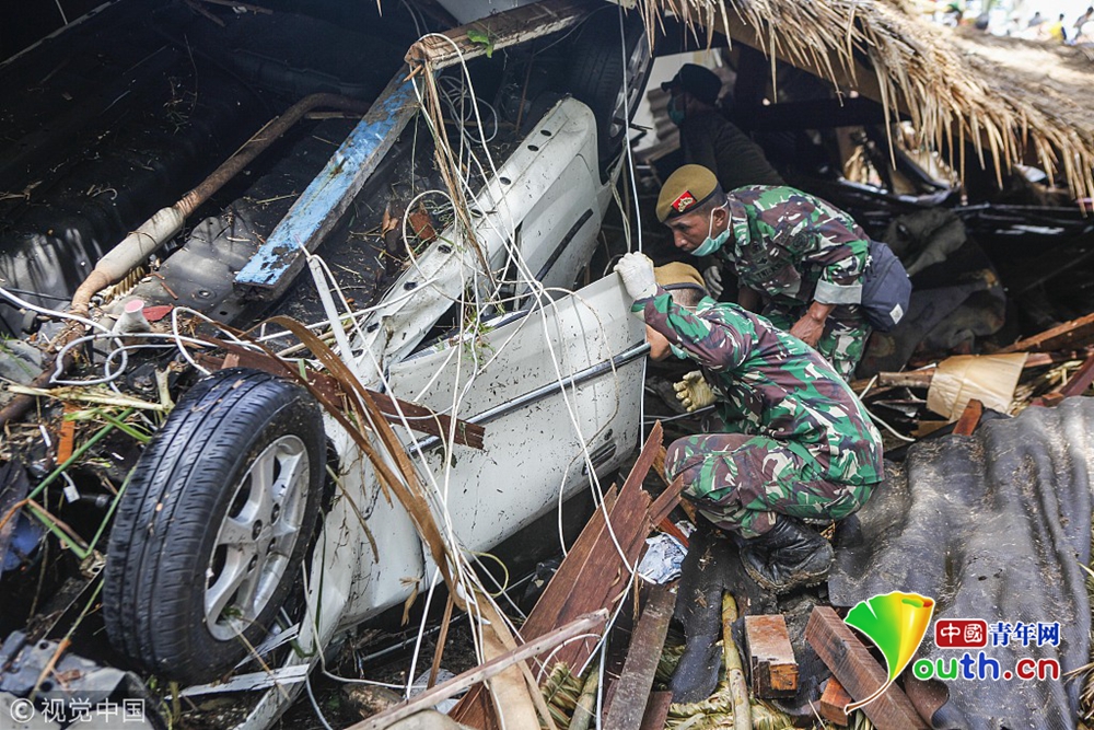 當(dāng)?shù)貢r(shí)間2018年12月24日,印度尼西亞萬丹省卡里塔,現(xiàn)場遍地廢墟,一片狼藉。22日夜間的一次海嘯襲擊了印度尼西亞爪哇島西海岸。印尼國家災(zāi)難機(jī)構(gòu)24日表示,印尼火山引發(fā)的海嘯造成的死亡人數(shù)已經(jīng)上升至373人,1000多人受傷。