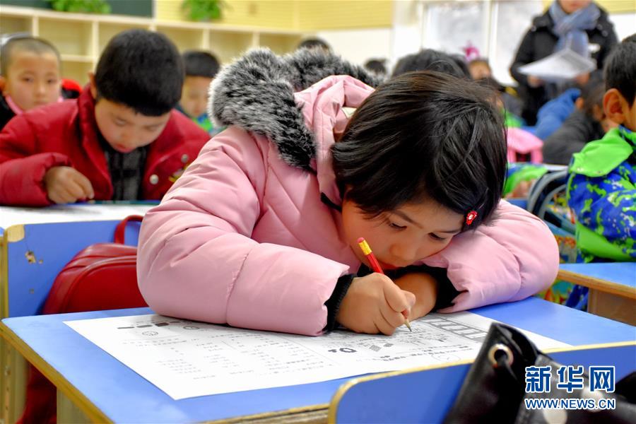 烏什·衢州小學(xué)學(xué)生在課堂上做題(12月19日攝)。