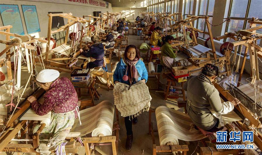 12月25日,在衡水市冀州區(qū)一家老粗布生產(chǎn)企業(yè),工人在織布。 2018年以來,河北省衡水市冀州區(qū)依托當(dāng)?shù)氐氖〖壏沁z田園棉手織粗布技藝資源,采取“非遺+扶貧”的模式,通過非遺傳承人開展技能培訓(xùn)、老師傅傳幫帶等,讓貧困村民在傳承非遺文化的同時學(xué)習(xí)傳統(tǒng)技藝,助力脫貧致富。 新華社記者 李曉果 攝