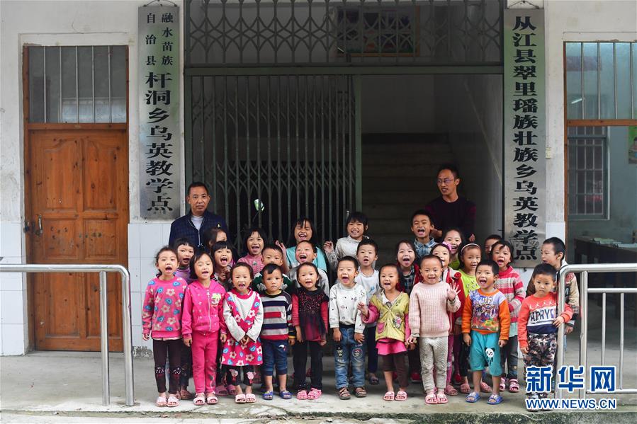 烏英教學點“一校跨兩省區(qū)”,目前有廣西籍學生18名,貴州籍學生9名,廣西貴州籍老師各1名。 烏英苗寨位于黔桂交界的大苗山深處,共有140戶,其中100戶屬廣西柳州市融水苗族自治縣桿洞鄉(xiāng)黨鳩村,40戶屬貴州省從江縣翠里瑤族壯族鄉(xiāng)南岑村。由于地處偏遠,山多地少,經(jīng)濟發(fā)展緩慢,目前整個苗寨還有76戶是貧困戶。 面對艱巨的脫貧任務,當?shù)攸h委政府在努力改善烏英苗寨公共基礎設施的同時,因地制宜,帶動群眾積極發(fā)展特色產業(yè)。從2017年11月至今的一年多時間,這里發(fā)生了很大改變:10戶村民新建了木樓,120多戶完成“三改”(改廁改廚改圈),1名貧困考生考上大學,1戶購買新汽車,4對新人舉行了婚禮,寬帶網(wǎng)絡開始進入貧困戶家庭,苗寨修建了新的辦公大樓和戲臺,安裝了4盞太陽能路燈,購買了40多個新蘆笙,水果種植專業(yè)合作社2018年種植的百香果也開始有所收獲,18戶貧困戶進入脫貧公示階段…… 烏英苗寨600多名黔桂苗族群眾,正在用勤勞的手,拔窮根摘窮帽,一起創(chuàng)造美好的明天。