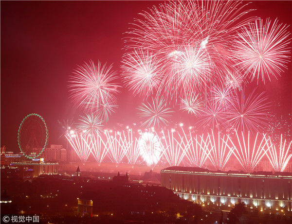 2017年12月31日,臺(tái)灣高雄,迎接2018年到來,高雄義大世界今晚涌入十萬人前來跨年,歡送2017,接著于午夜12點(diǎn),施放全臺(tái)最長(zhǎng)999秒音樂藝術(shù)跨年煙火秀,結(jié)合今年絢爛的燈光特效,搭配特效呈現(xiàn)各種閃耀圖騰,加上引人入勝的情景音樂,絕美驚艷南臺(tái)灣的夜空。