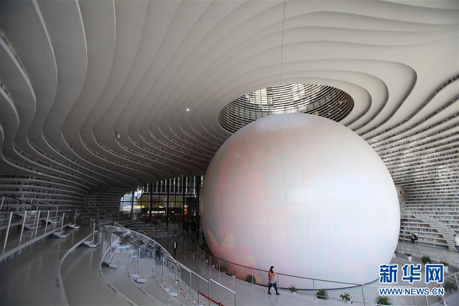 這是12月27日拍攝的天津濱海新區(qū)圖書館中庭。 濱海新區(qū)圖書館位于天津濱海文化中心,2017年10月1日正式開館,設計立意為“濱海之眼”和“書山有路勤為徑”。圖書館現(xiàn)有藏書60多萬冊,一年多來接待讀者約280萬人次,已成為濱海新區(qū)的文化“新地標”。 新華社記者安希雅攝