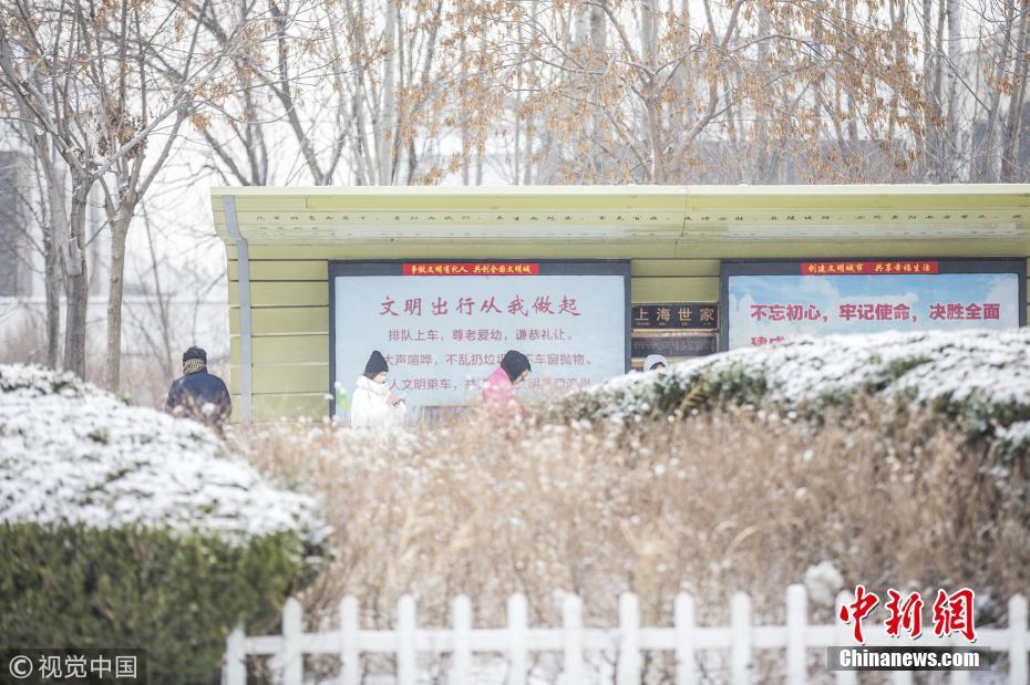 山東濱州發(fā)布道路結(jié)冰黃色預警信號市區(qū)出現(xiàn)較明顯降雪,路表溫度低于0℃。圖片來源:視覺中國
