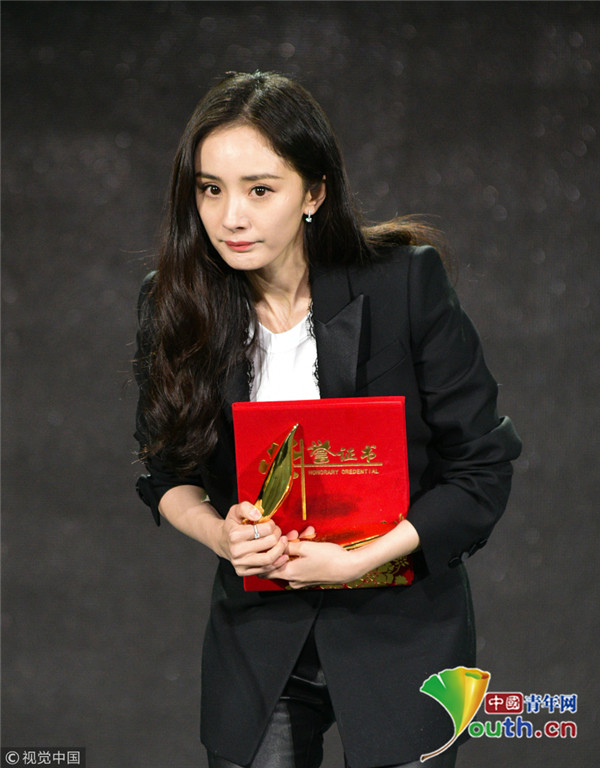 2018年12月28日,第五屆中國(guó)好演員表彰盛典頒獎(jiǎng)禮。楊冪西裝現(xiàn)身大紅唇配波浪卷精致干練,臺(tái)下端坐用厚衣服蓋腿,與工作人員悄悄交談端正舉著手顯呆萌。當(dāng)晚?xiàng)顑鐦s獲“綠寶石女演員”獎(jiǎng),上臺(tái)發(fā)表感言帥氣女強(qiáng)人范氣場(chǎng)十足。