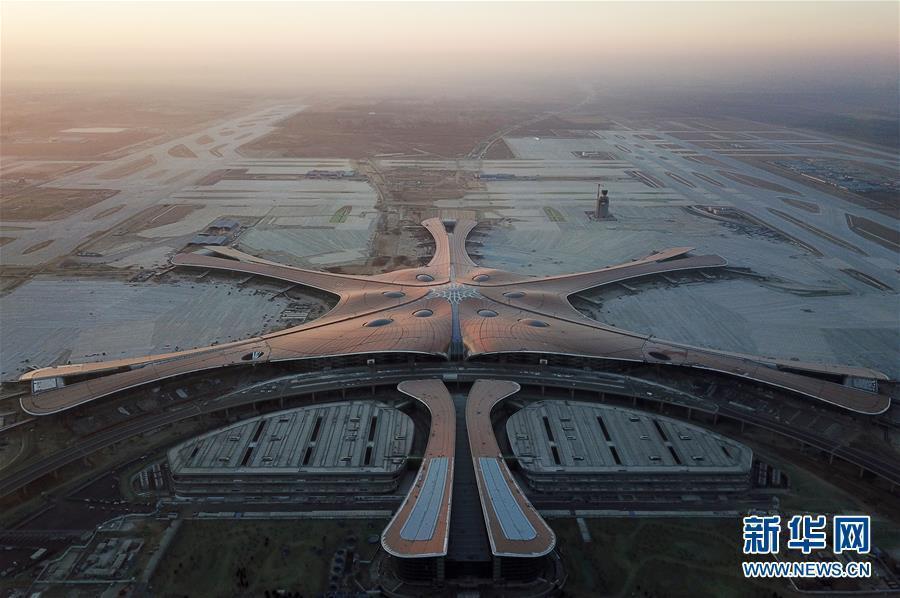 12月29日拍攝的北京大興國(guó)際機(jī)場(chǎng)(無(wú)人機(jī)拍攝)。 當(dāng)日,在北京大興國(guó)際機(jī)場(chǎng),隨著清晨第一縷陽(yáng)光灑在航站樓古銅色的屋頂上,寓意“鳳凰展翅”的航站樓呈現(xiàn)出金光燦燦的景象。 新華社記者 鞠煥宗 攝 圖片來(lái)源:新華網(wǎng)
