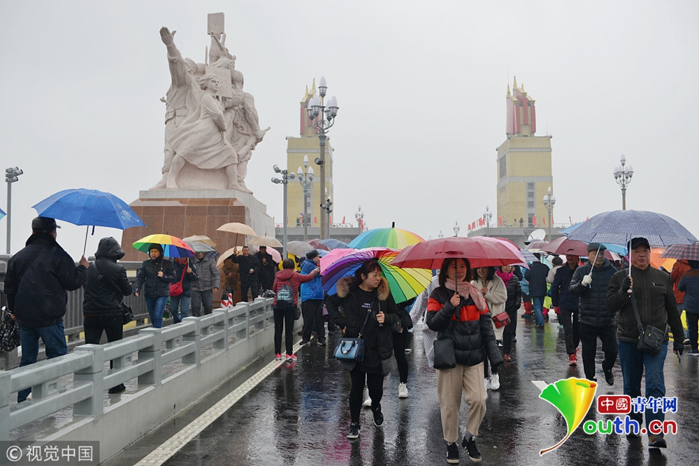2018年12月26日,南京。南京長(zhǎng)江大橋維修改造工程竣工通車在即,12月26日至28日三天向公眾開(kāi)放,12月26日,“市民開(kāi)放日”首日,早晨九時(shí)許,雖然下著雨,但記者在南京長(zhǎng)江大橋入口和橋上看到,如織的市民打著傘來(lái)到大橋,整個(gè)橋上全是撐傘觀看的市民,足有萬(wàn)人,十分壯觀。