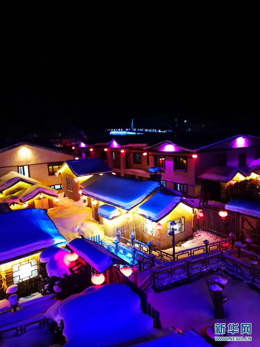 1月3日,燈光映照下的雪鄉(xiāng)一角。 新華網(wǎng)記者 張明宇 攝