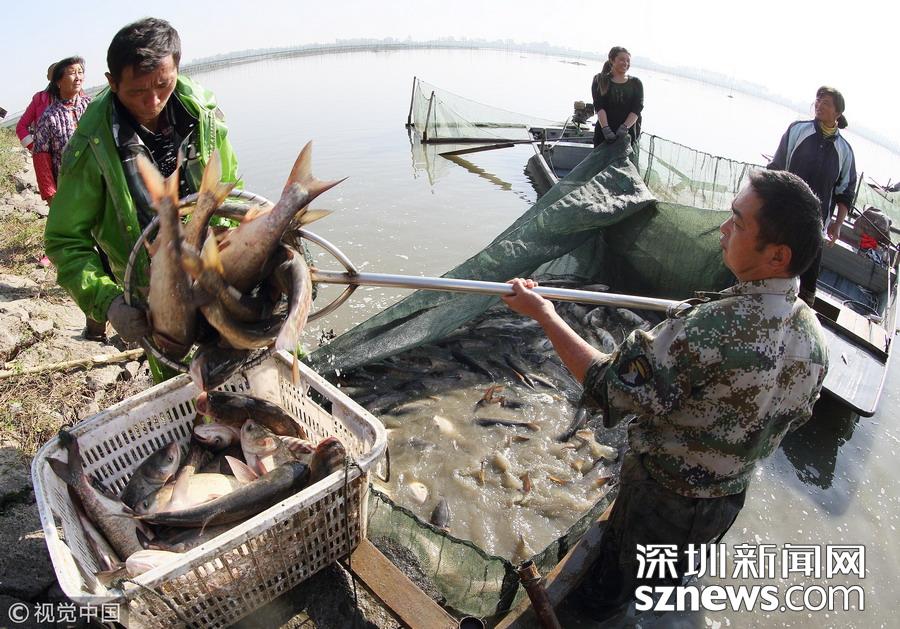 江蘇揚(yáng)州:天氣轉(zhuǎn)涼 捕魚上市正當(dāng)時