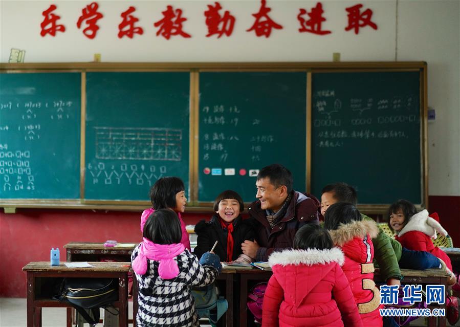 1月3日,章站亮利用課間時間給學(xué)生們講故事。由于黃泥村地處偏遠(yuǎn),學(xué)生的父母長期不在家,章站亮的故事幾乎成為了學(xué)生了解外界社會的重要方式。  新華社記者 胡晨歡 攝