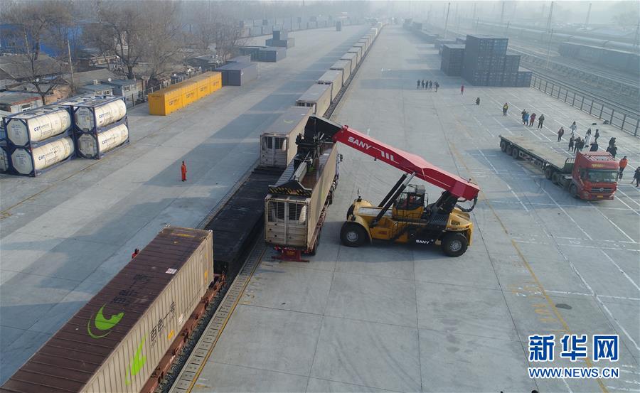 1月14日,工作人員在北京大紅門站卸貨。 當(dāng)日,從廣西發(fā)出的“年貨”集裝箱班列“百色一號”抵達(dá)北京鐵路局北京大紅門站,滿載南方新鮮果蔬、凍海產(chǎn)品的集裝箱將從這里配送到京津冀地區(qū),不僅豐富老百姓的節(jié)日餐桌,也為廣西地區(qū)的特色農(nóng)產(chǎn)品打開了北方銷售市場。 新華社記者 邢廣利 攝