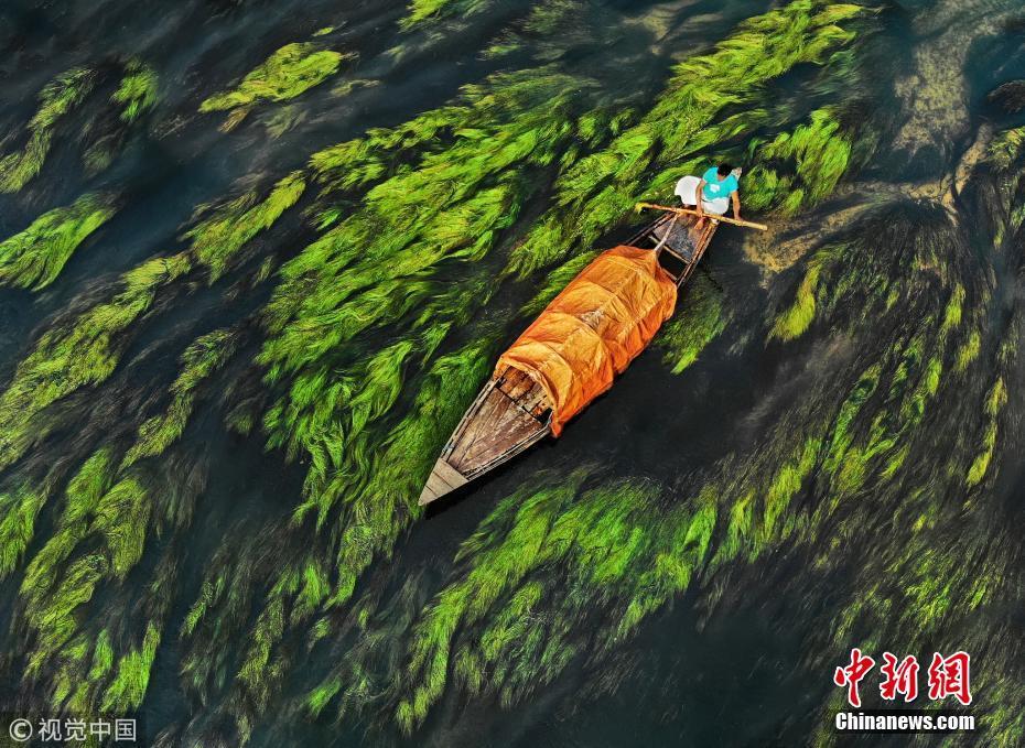 中國(guó)新聞網(wǎng)1月14日訊(具體拍攝時(shí)間不詳),孟加拉國(guó)烏拉帕拉,漁船在水流和藻類(lèi)的映襯下前行,畫(huà)面看起來(lái)就像水彩畫(huà)一般。圖片來(lái)源:視覺(jué)中國(guó)