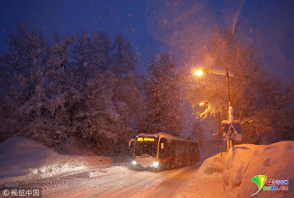 奧地利暴風(fēng)雪持續(xù) 公交車站被積雪掩埋
