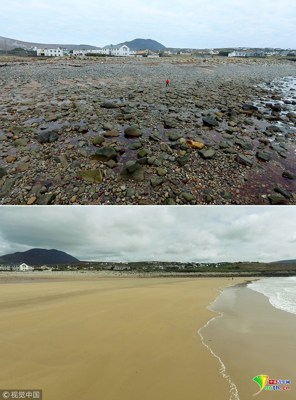 中國(guó)青年網(wǎng)2019年1月15日訊(具體拍攝時(shí)間不詳),愛爾蘭阿基爾島,Dooagh地帶的黃金海灘在1984年的一場(chǎng)暴風(fēng)雨后神秘消失,但在2017年4月,消失了33年的海灘又奇跡般地重現(xiàn)。