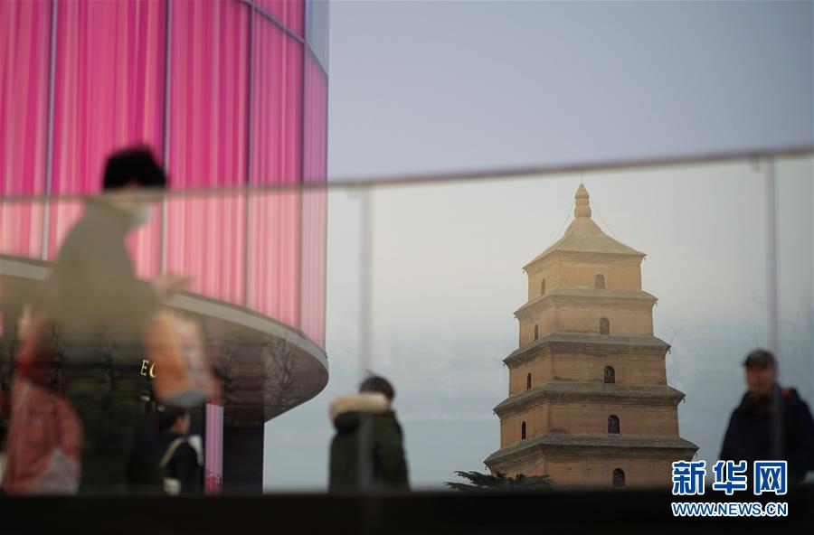改造后的商圈建筑“邂逅”大雁塔(1月15日攝)。 隨著時(shí)代發(fā)展,西安著名歷史遺跡大雁塔的周邊商圈也歷經(jīng)變遷。通過(guò)近年來(lái)的改造提升,大雁塔商圈如今煥然一新,新潮時(shí)尚的大型商業(yè)綜合體和商業(yè)街區(qū)為古老的大雁塔注入了現(xiàn)代活力,也為來(lái)大雁塔游玩的游客提供了更好的旅游體驗(yàn)。 新華社記者 邵瑞 攝