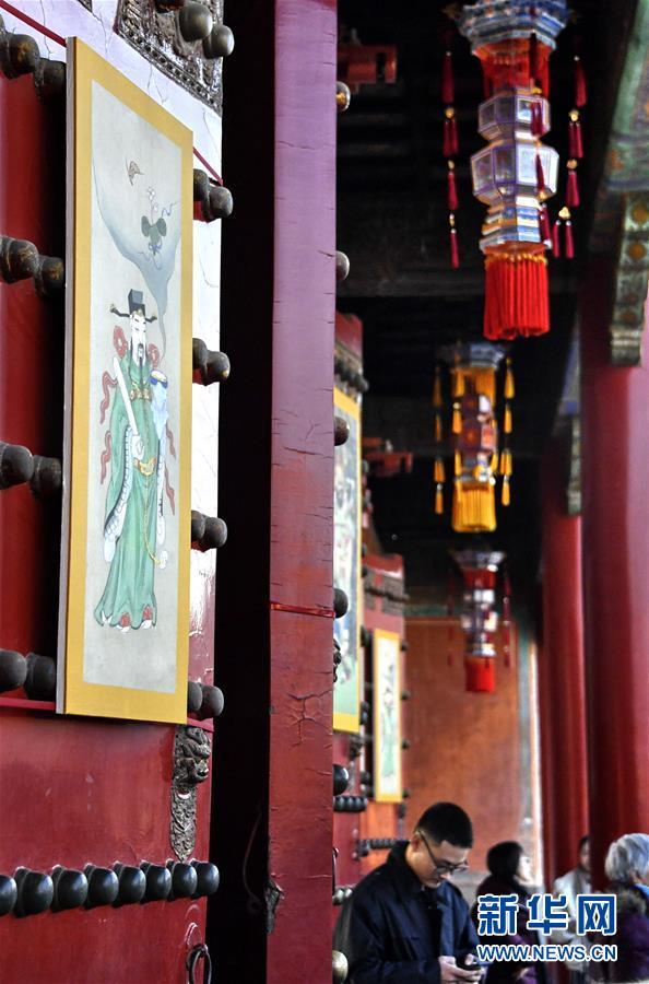 這是在故宮內(nèi)拍攝的古代宮廷節(jié)日裝飾品(1月25日攝)。 春節(jié)將至,北京故宮博物院內(nèi)張燈結(jié)彩,到處懸掛著宮燈、萬壽燈、年畫、門神、福字等古代宮廷節(jié)日裝飾品,讓來自國內(nèi)外的游人感受到濃濃的年味。 新華社記者 李欣攝