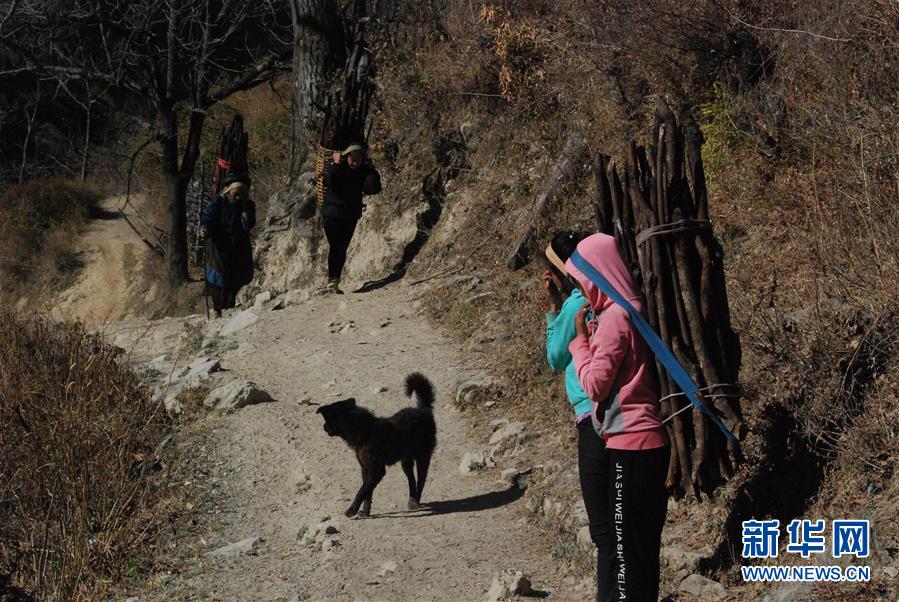 1月25日,在云南省蘭坪縣,余永妹(左)和褚福妹背柴回家。