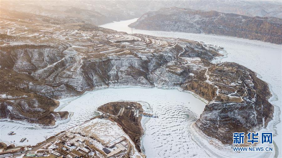 這是2月17日無人機(jī)拍攝的老牛灣雪景。 黃河老牛灣位于山西省和內(nèi)蒙古自治區(qū)交界處。 新華社記者 彭源 攝