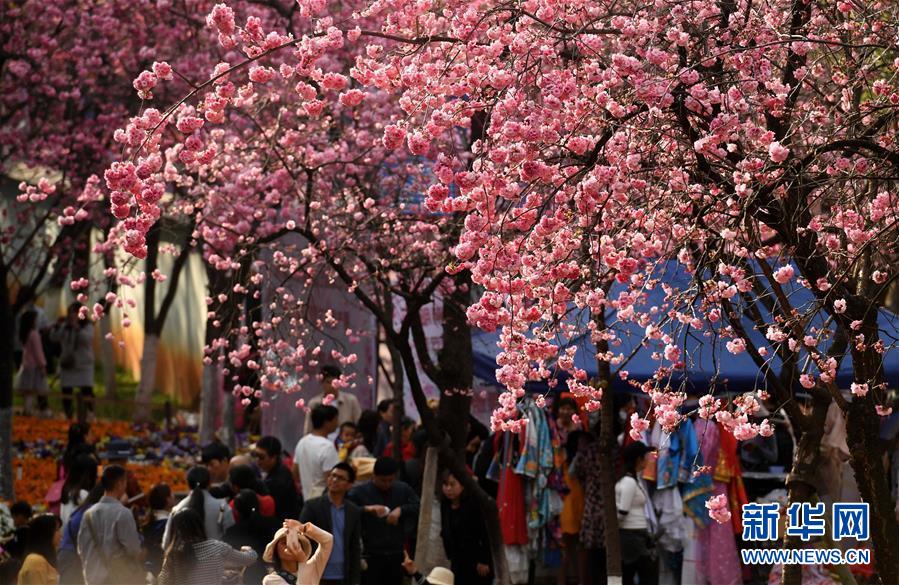 游人在昆明圓通山公園觀賞盛開的櫻花(3月16日攝)。近日,云南省昆明市迎來櫻花盛開的時節(jié)。昆明圓通山公園的數(shù)千株櫻花燦爛綻放,吸引了市民和游客前來觀花賞景。新華社記者藺以光攝
