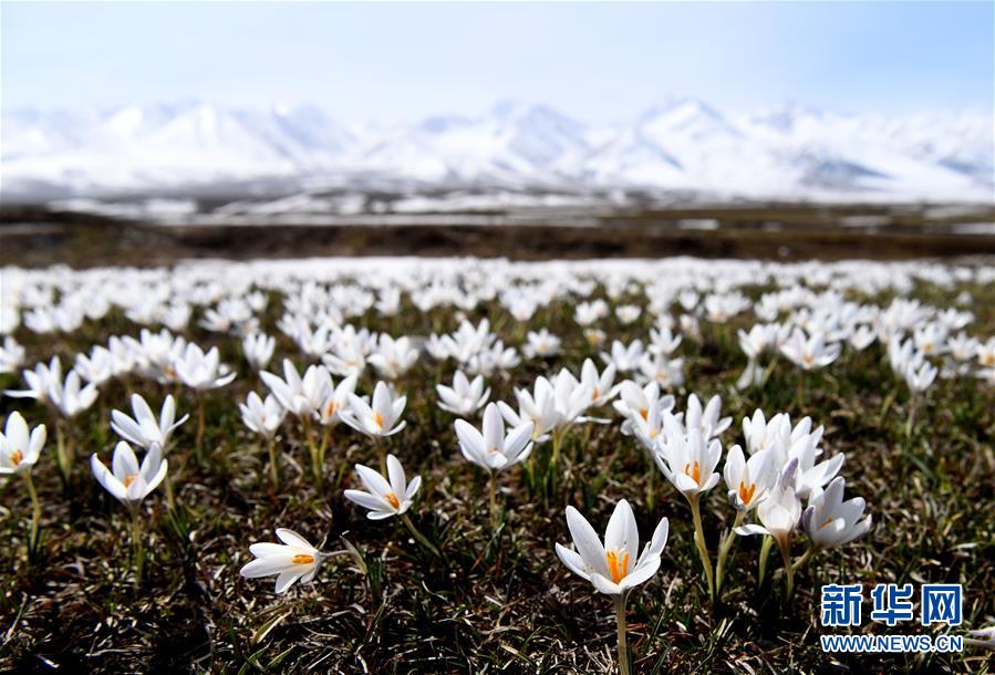 這是新疆那拉提景區(qū)雪山腳下盛開(kāi)的野百合(4月4日攝)。新華社記者 沙達(dá)提 攝