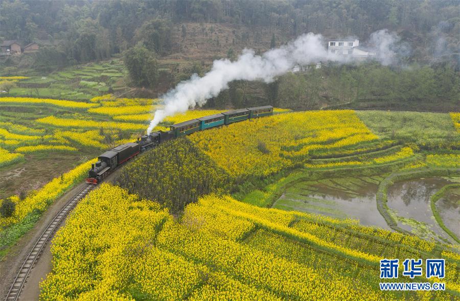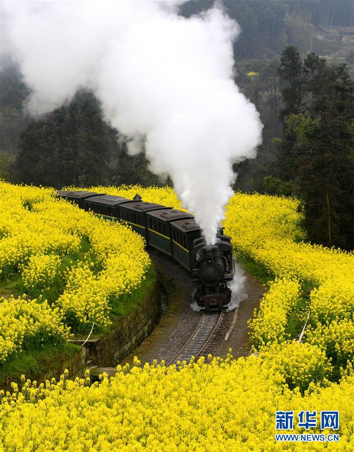 初春時(shí)節(jié),在花海中穿行的嘉陽小火車迎來了每年的旅游旺季,眾多游客慕名前來乘坐。