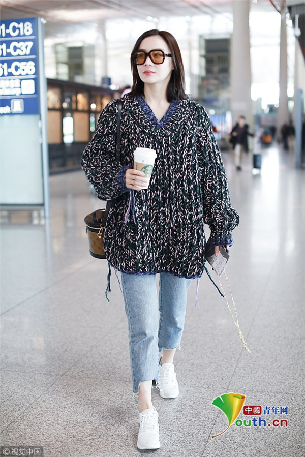 2019年4月10日,北京,袁姍姍現(xiàn)身機場。她穿碎花毛衣低調(diào)玩文藝,戴茶色墨鏡手捧咖啡,露腳踝美腿纖細(xì),休閑打扮隨意又愜意,時尚有型舒適十足。